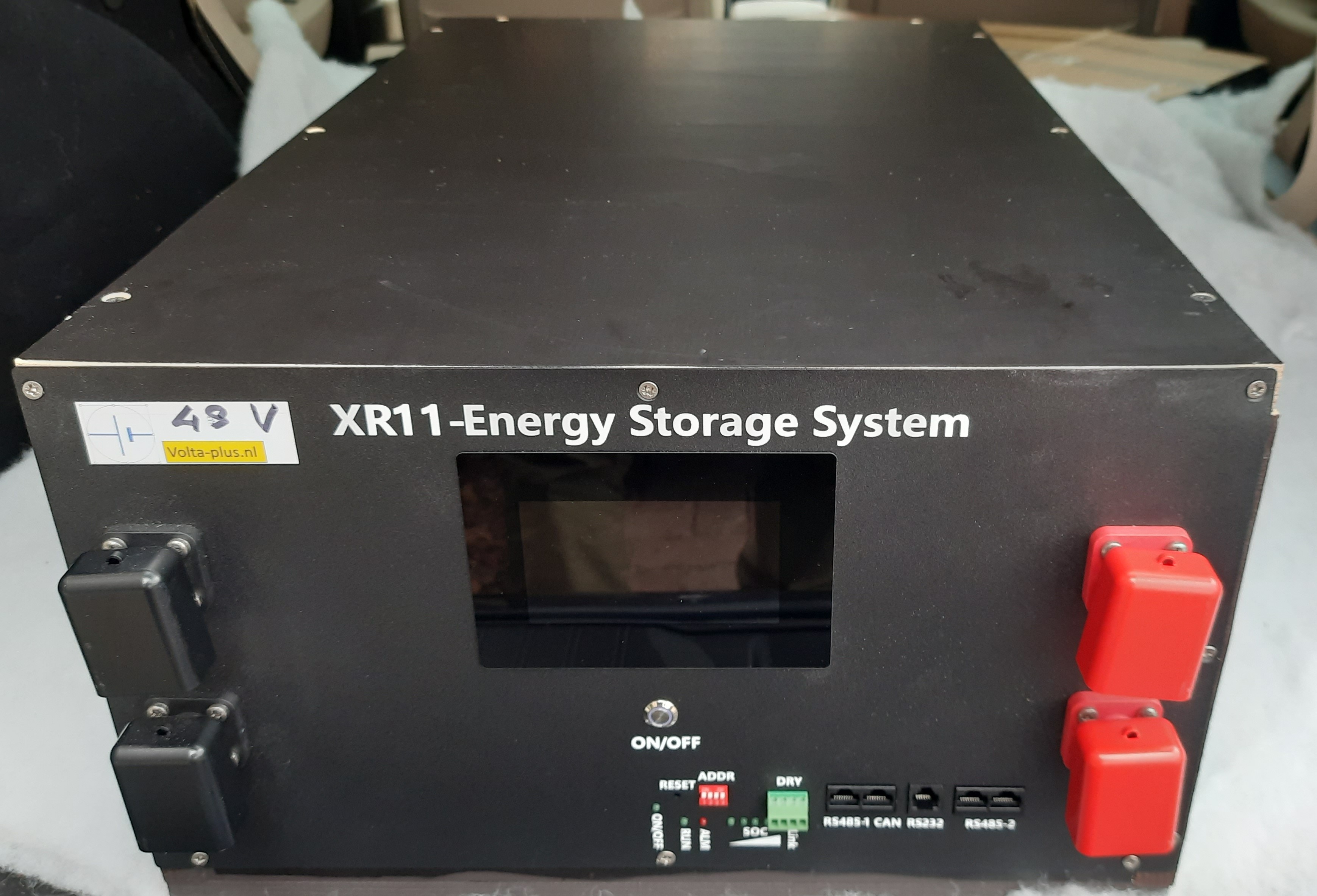 B30 serie 48v batterijen : Model B30 : 5.5 kWh. Model; Model B32 (foto boven, 17kWh): De ideale thuis batterij van 17 kWh in metalen behuizing. Deze kan zowel verticaal als plat worden geplaatst. Het gewicht is 110 kg ! B32 en B33 zijn uitgerust met een Inverter BMS van JK, hebben een 2A active balancer en aansluitingen RS232, RS485-1 en CAN interface voor communicatie met de inverter.